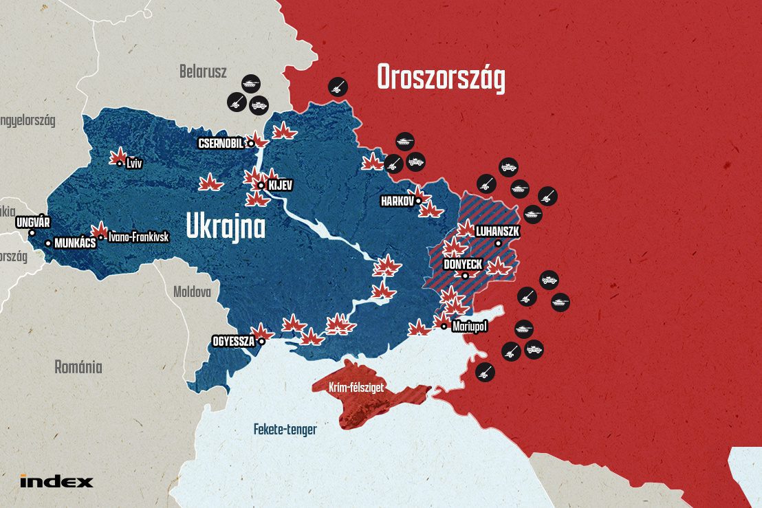Szemtanú szerint a katonák megjelentek Kárpátalján is, tankokkal és kocsikkal próbálják biztosítani a helyiek biztonságát. Azért is tartanak támadástól ezeken a területeken, mert Munkácson katonai bázis van, az alig 40 kilométerre lévő Ungváron pedig repülőtér. Az egyes jelentések szerint ezeket a területeket támadhatják elsőként az oroszok, ha a nyugat felé eszkalálódik a konfliktus.