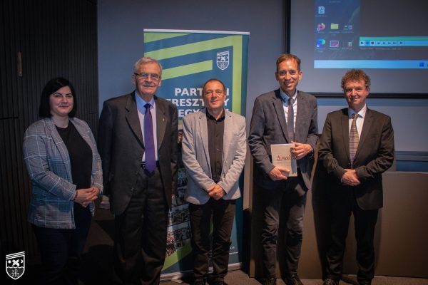 A Partiumi Kiadó gondozásában tavaly ősszel megjelent A nyelv mint emlékezet című kötet nagyváradi bemutatójára kerítettek sort 2025. március 12-én Partiumi Keresztény Egyetemen Amfiteátrumába. Az esemény – miként nagyrészt maga a kötet is – tisztelgés volt dr. Balázs Géza professzor előtt, aki a PKE Nyelv- és Irodalomtudományi Tanszékén tanított, 2014-től tanszékvezetőként működött, 65 életévét betöltve pedig nyugdíjba vonult.